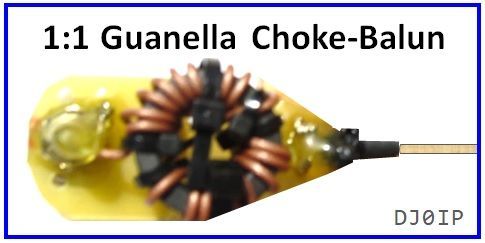The Guanella Choke-Balun consists of a stack of 2 FT-114-43 Toroids cross-wound with 17 turns of RG-178, a very thin and lightweight, Teflon-insulated coax. Weight: 50g (1.8 oz.)