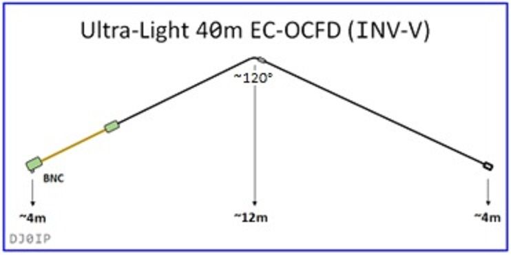Like with any Inv-L antenna, the lengths of the vertical and horizontal segments may be adjusted to adapt to the height of your pole/support.