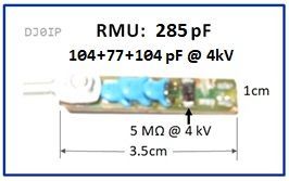 The RMU consists of 3 capacitors and 2 resistors. The resistors are stacked (piggy-back) creating 5M Ohms @ 4kV. They protect the capacitors from high voltage static electricity.