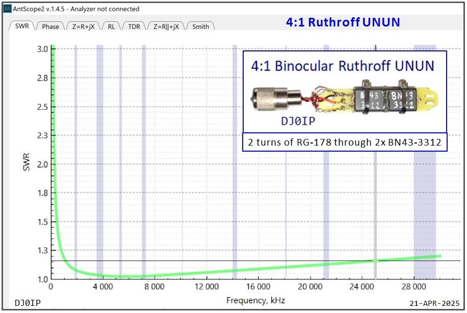 To find out, I hung my AA-230 ZOOM 4 meters in the air and measured all bands directly at the 1:1 Guanella Choke Balun, using BlueTooth and my cell phone.