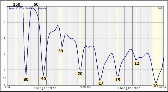 The antenna covers all of the ham bands in the HF spectrum. The question is, how well does it work on each of the bands?