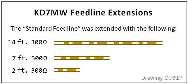 In order to present a selection of impedances to the antenna matchboxes, the overall length of the feedline was adjusted by adding combinations of the feedline extensions.
