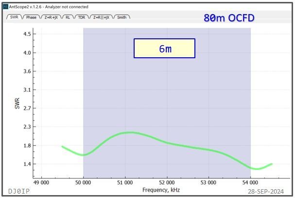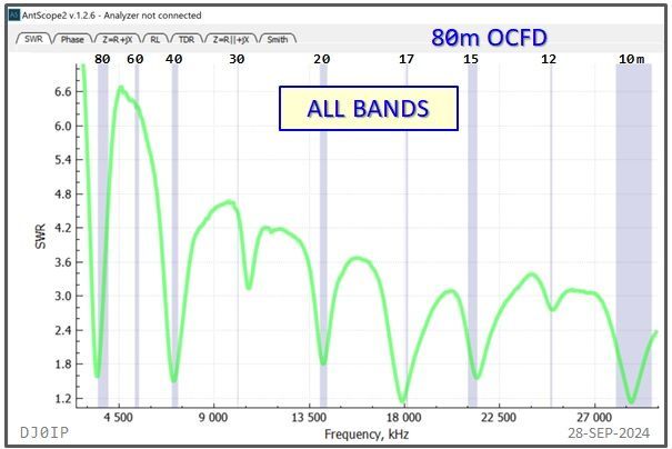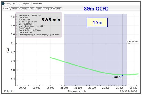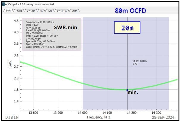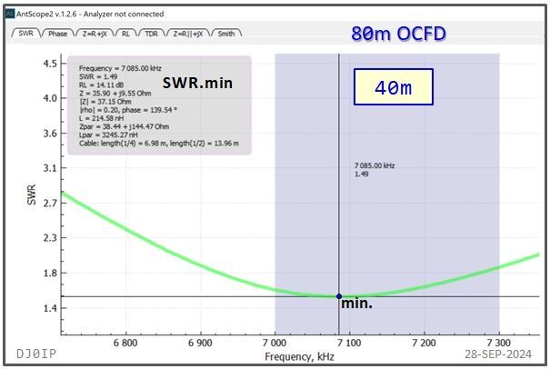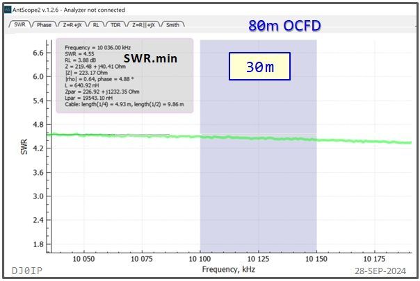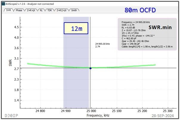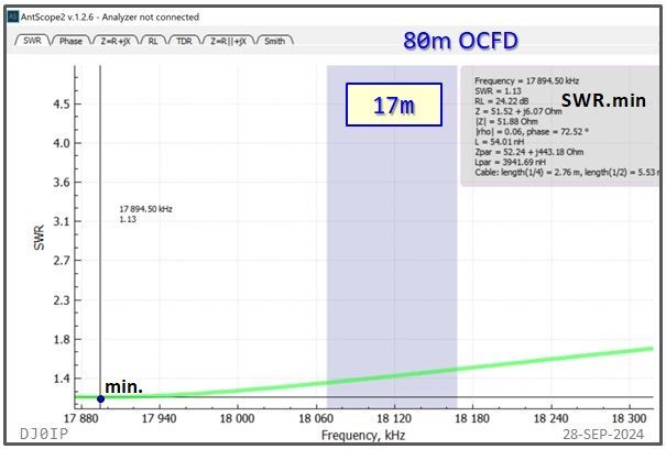 I have shown the resonant frequency (j0) and the frequency of minimum SWR (SWRmin) for each of the classic HF bands. I did not show this for the WARC bands because neither j0 nor SWRmin fall within the band on those bands.