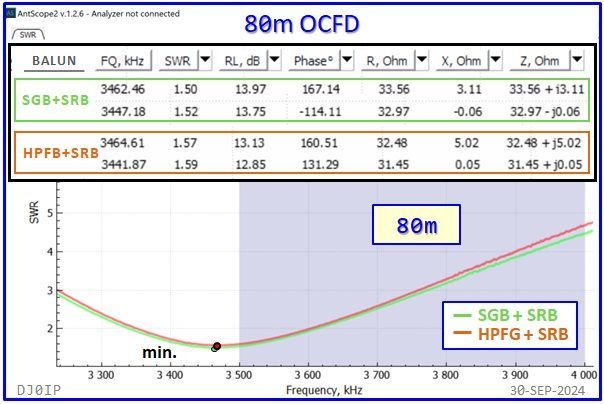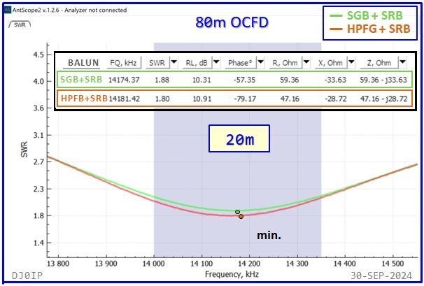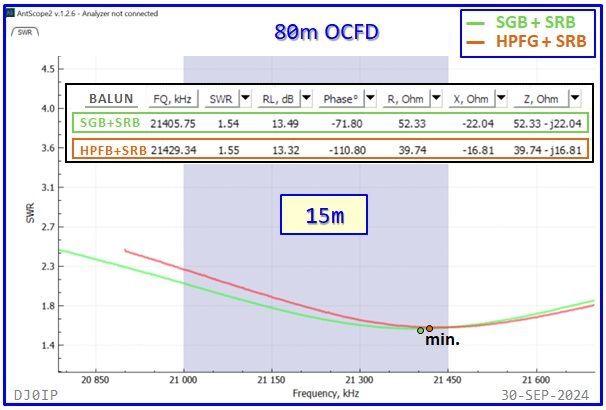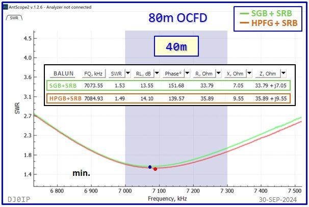 As stated above, there is hardly any difference between the SWR curves when using an FT-240-43 Vs. using an FT-140-43 for the 1:1 Guanella Balun in the Hybrid-Balun! In most cases the difference in frequency was less than 10 kHz.