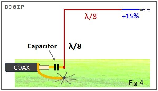 However, increasing the length by this amount will lower the frequency of resonance by 15%. The resonant frequency can be raised back to its desired frequency by inserting a capacitor between the center conductor of the coax and the radiator.
