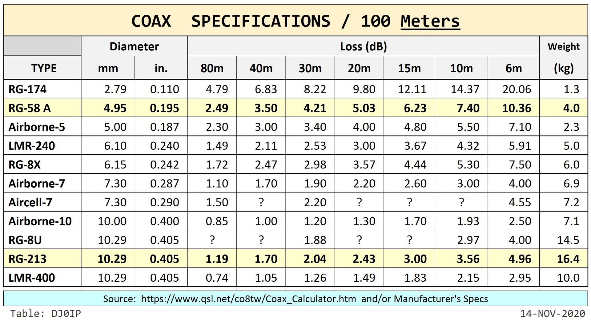 BEFORE WE BEGIN, let's first look at the published loss specs of various types of coax :