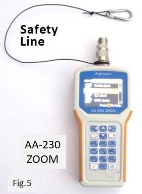 Avoiding Disaster: Be sure to use a safety line on the analyzer to prevent it from falling to the ground. Mine is made of 1mm Kevlar rope. Click on image below to enlarge photo: