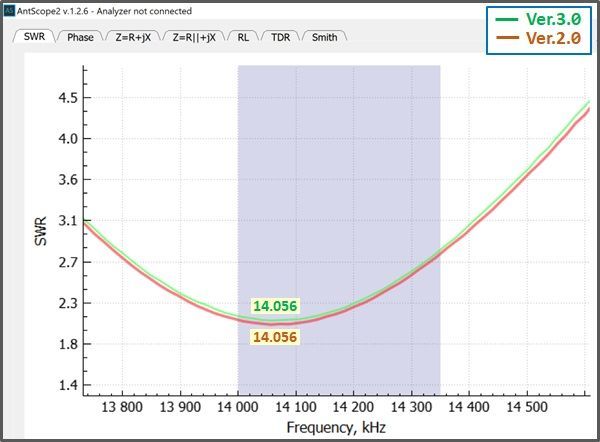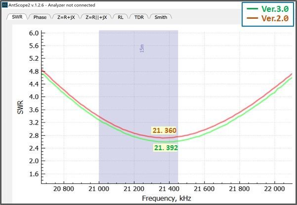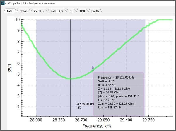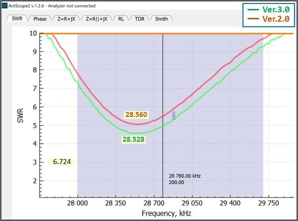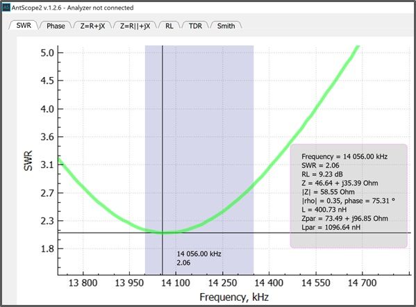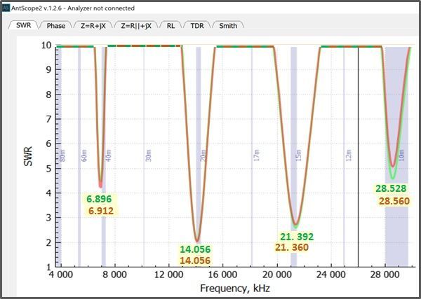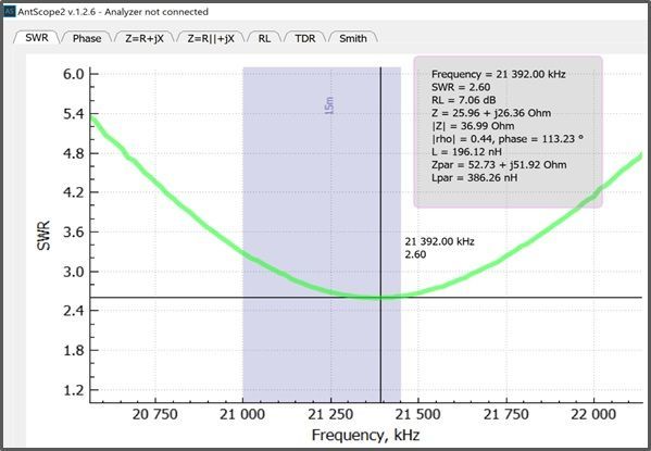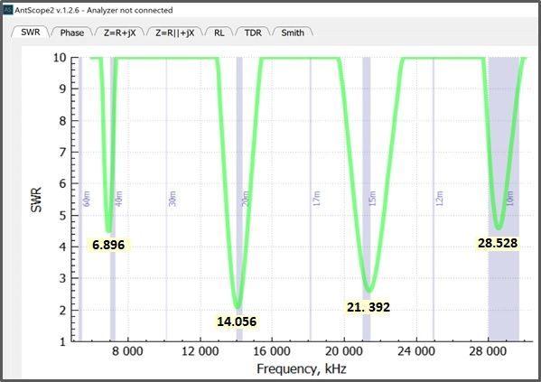 With the feedpoint located at 18.5%, the SWR curves changed slightly.