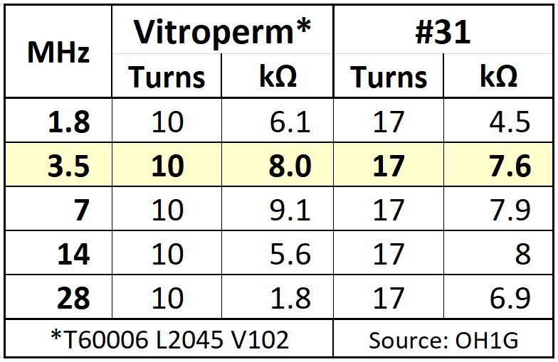 I was made aware of Vitroperm Toroids by Mikko Sannala, OH1G / AB6RF, about two year ago (2022). This was claimed to be better in 1:1 Guanella choke-baluns because it requires fewer turns of transmission line for the same amount of permeability as a choke-balun wound on a Ferrite Toroid.