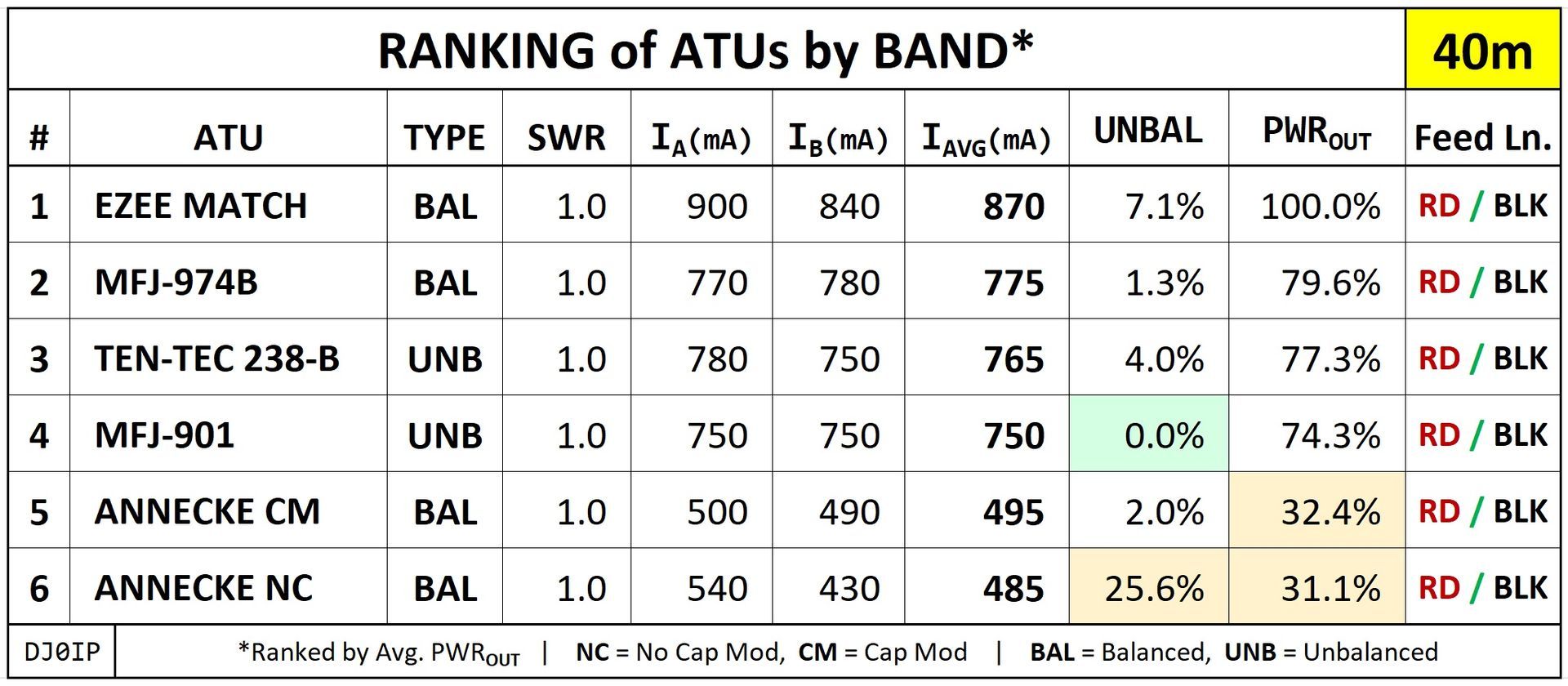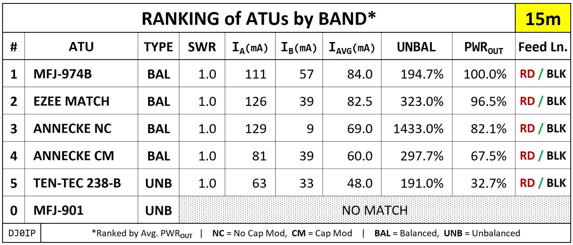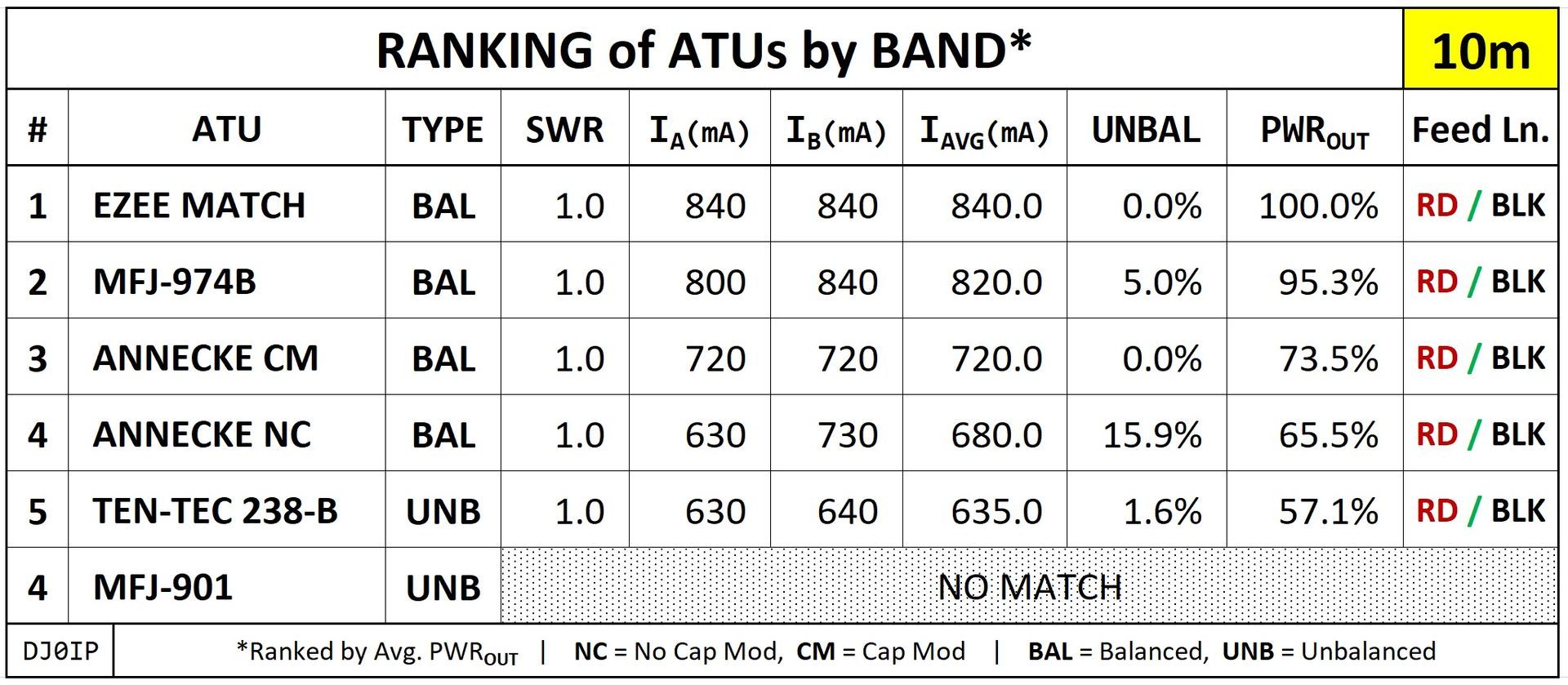 The EZEE MATCH and MFJ-974B were on top (trading places) on all bands except 80m.