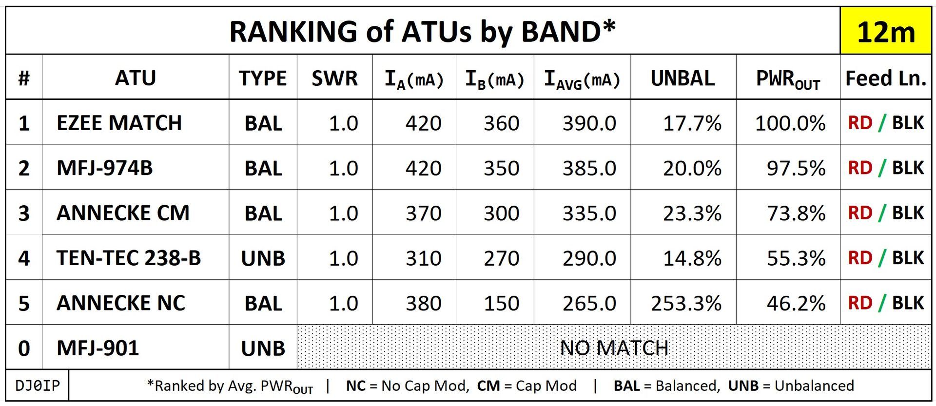 Although the MFJ-974B and EZEE MATCH were on top again, they had horrible balance. ALL tuners had horrible balance on this band.