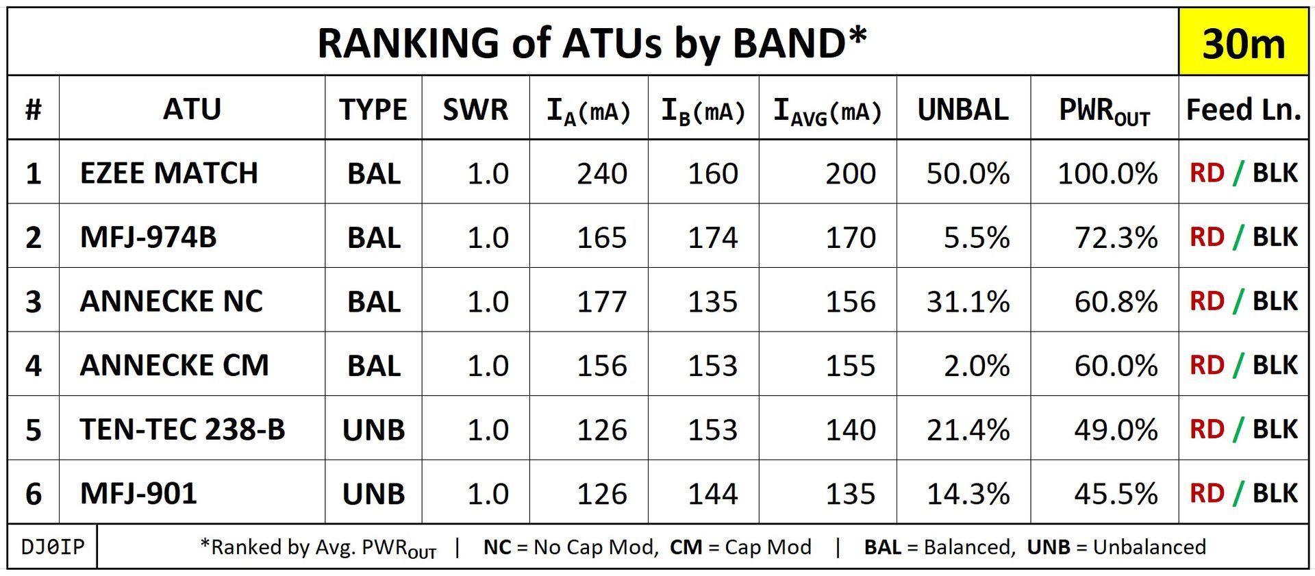 Again the MFJ-974B and EZEE MATACH are at the top of the list. The MFJ had more current, the EZEE Match had better balance.