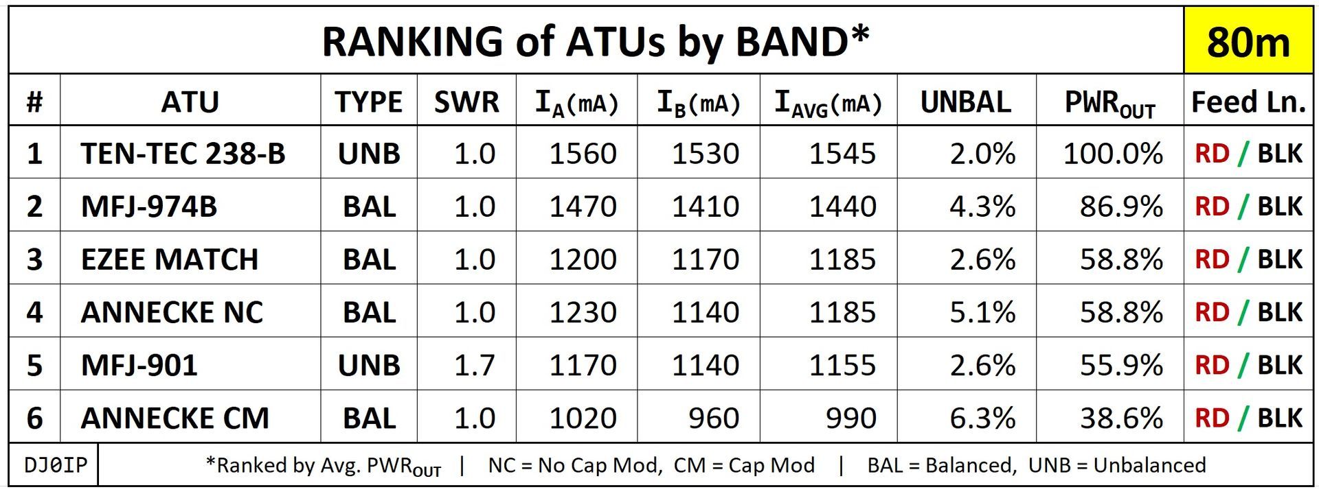 On 80m, the two Unbalanced ATUs performed better than the 4 Balanced ATUs.
