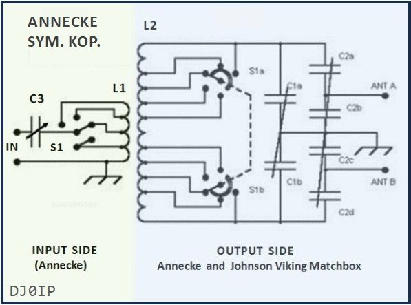 The ANNECKE schematic on the right is the same for both the 200 Watt and 1 kW versions of the ANNECKE SYMMETRISCHE KOPPLER.