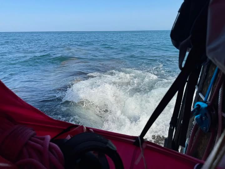 The photo above is a screen shot taken from a video showing Emil jumping from the boat and swimming to the rock. It is posted on Facebook.