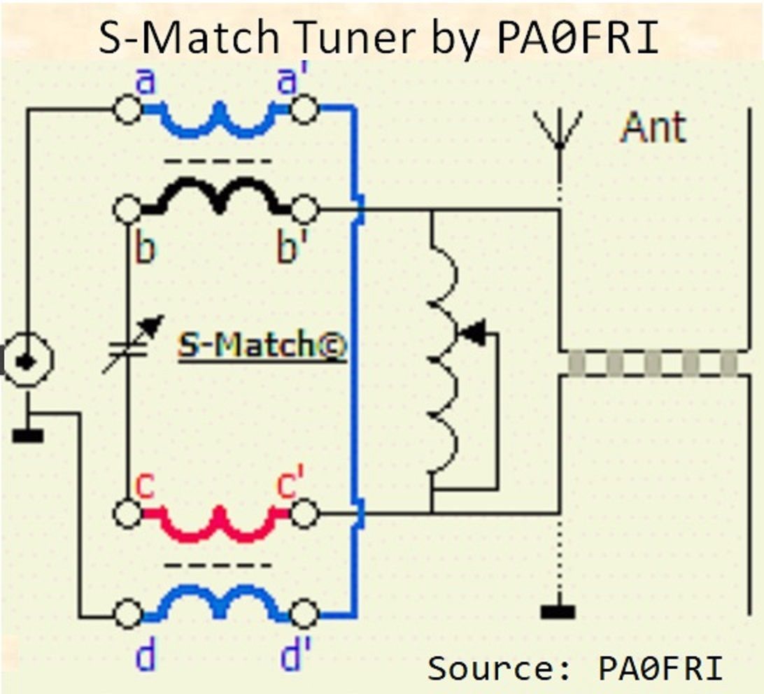 Side Note: Since there is no commercial source for the S-Match, each and every S-Match is unique, and will be different from the others. I personally find it pointless to build one. There are low-cost T-Network tuners that will match balanced-line antennas just as well, using an external 1:1 balun. Read more in the