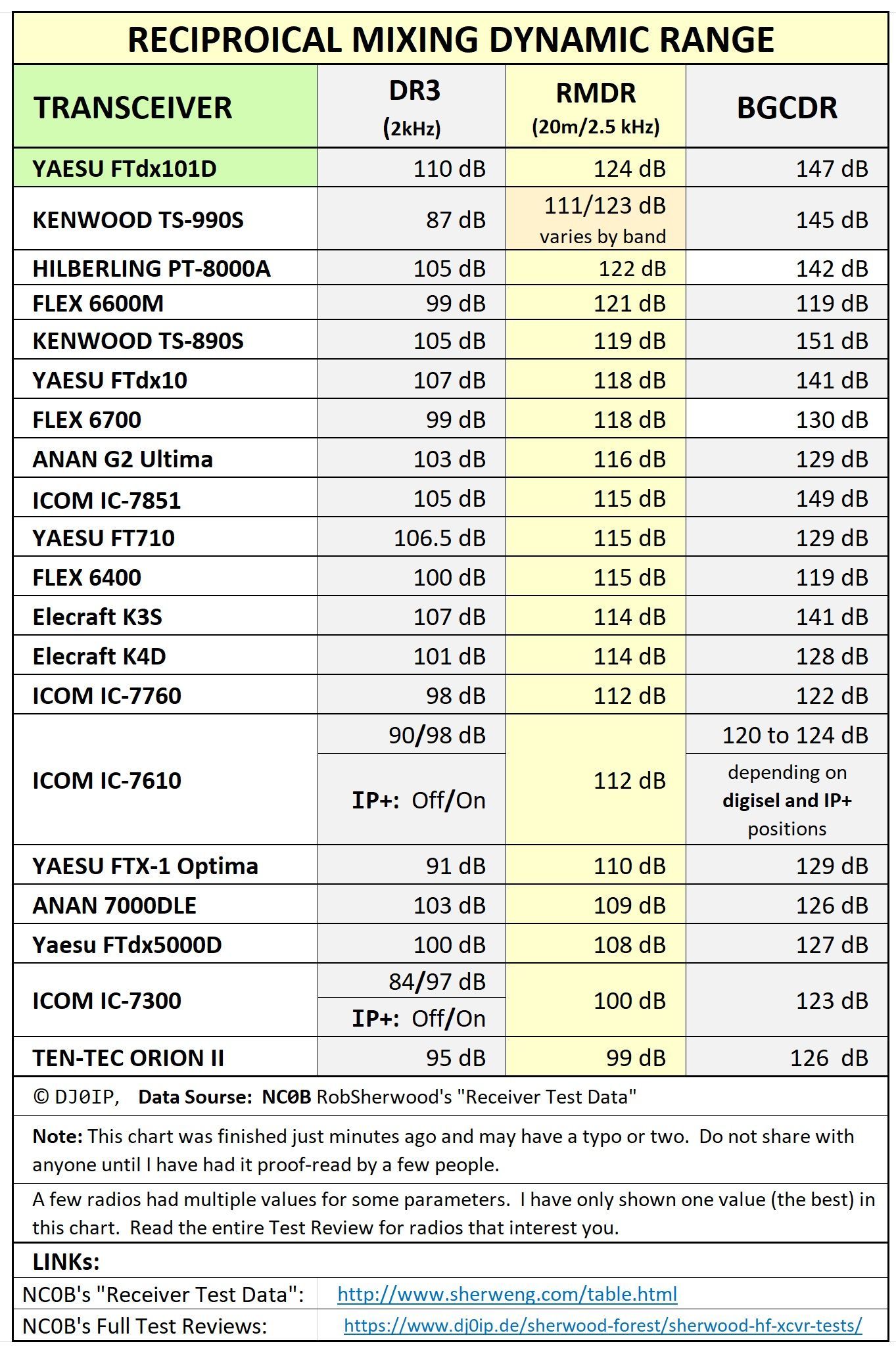 Rob Sherwood's (NC0B) "Receiver Test Data" chart has been used by hams for decades to assist in selecting their next radio. HOWEVER, this list, like every list, can only rank radios by one single parameter.