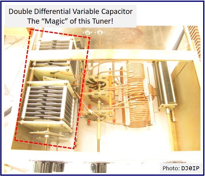 Its "Variometer" inductor has 2 positions, "series" (high inductance used on 80m), and "parallel" (low inductance used on all other bands).